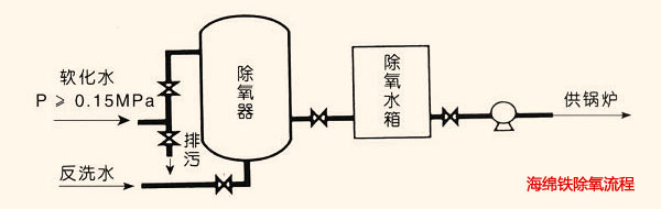 海綿鐵除氧器是一種除氧裝置,含有氧氣的水進(jìn)入除氧器,穿過(guò)海綿鐵濾料層,這種特制的海綿鐵濾料具有巨大的比表面積,可使水中的溶解氧與鐵發(fā)生的氧化反應,從而把水中的氧去除掉
